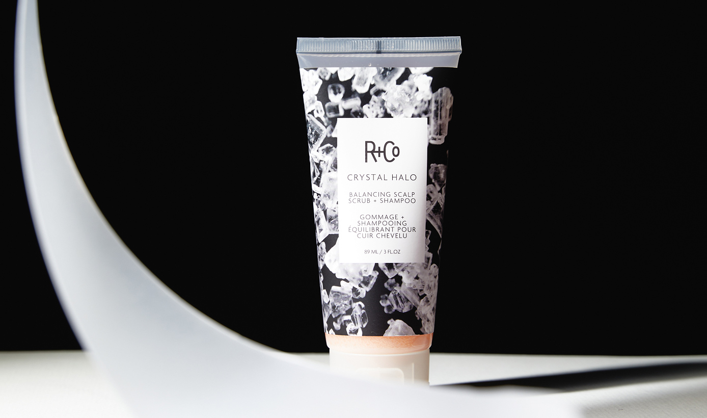Crystal Halo от R+Co работает за двоих: это шампунь и скраб в одном флаконе. За эффект пилинга отвечает сахарный тростник, за очищение и детокс — экстракты кокоса и коры белой шелковицы. При контакте с водой продукт дает обильную пену, а отшелушивающие частицы растворяются. Наносите массажными движениями, после чего смойте теплой водой. Продукт также оздоравливает микробиом кожи головы благодаря экстракту черники в составе. Эффект пилинга важен для здоровья кожи головы: так очищается путь для последующих ингредиентов ухода, а значит они смогут эффективнее сработать.